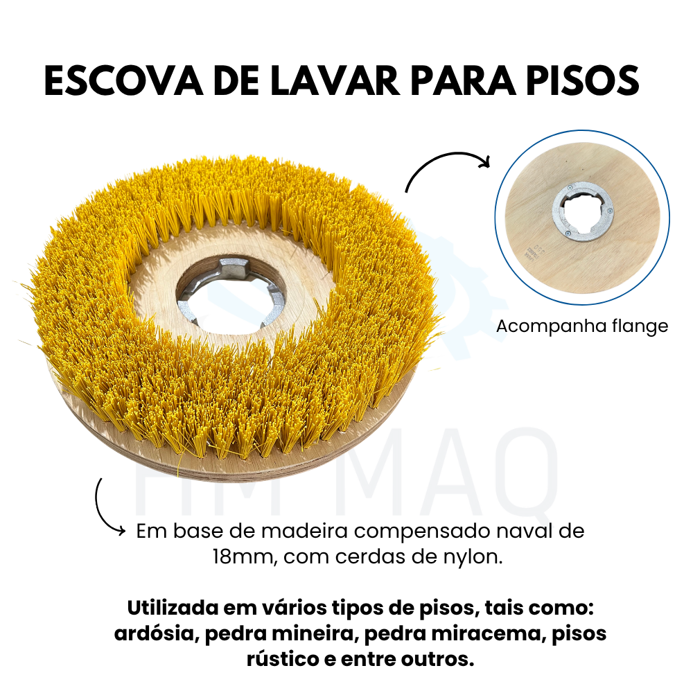 A Escova de Lavar para Enceradeira foi desenvolvida para garantir limpeza eficiente e durabilidade. Com base de madeira em compensado naval, oferece resistência à umidade e ao desgaste. Suas cerdas amarelas de PET estabilizado removem sujeira pesada sem danificar o piso, tornando-a ideal para superfícies como ardósia, pedra mineira, miracema, pisos rústicos e outros.